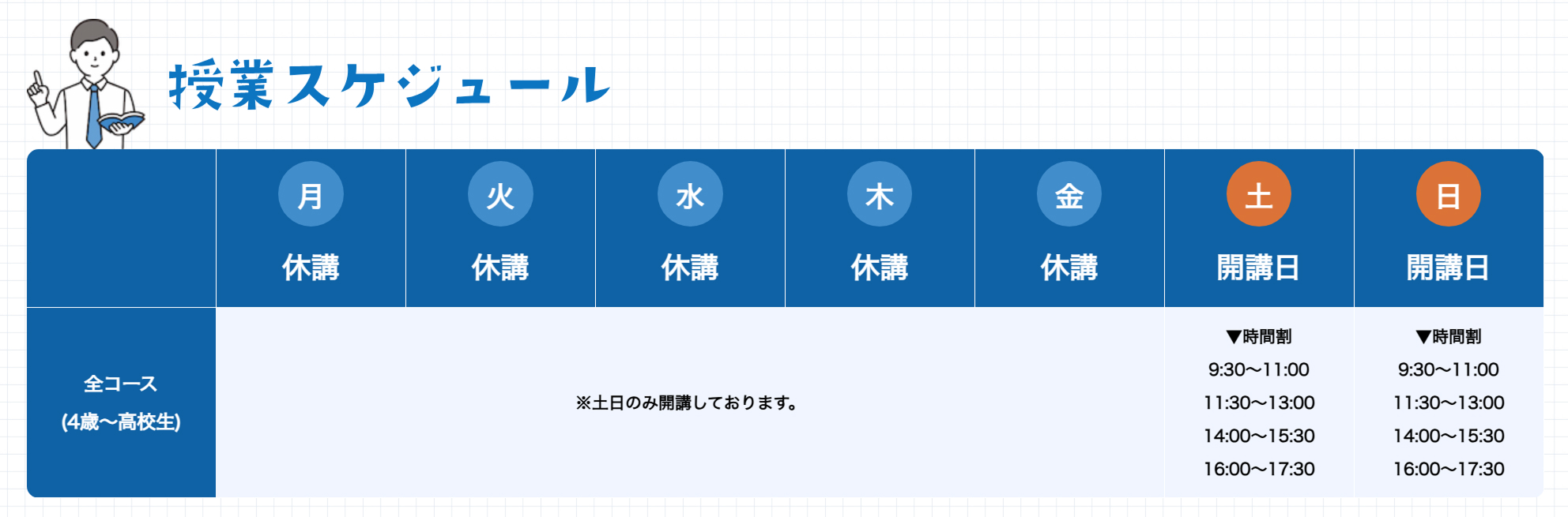・対象年齢:4歳〜高校3年生